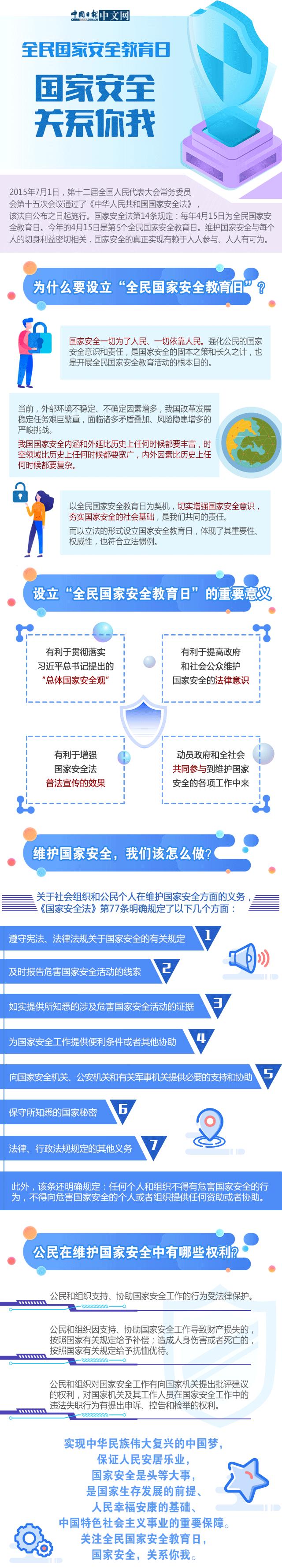2021年4月15日,是第6个全民国家安全教育日。维护国家安全与每个人的切身利益密切相关,国家安全的真正实现有赖于人人参与、人人有可为。