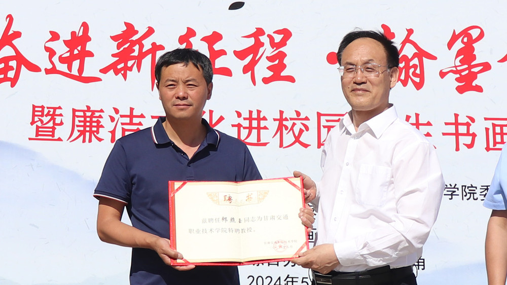 5月30日下午,由学院团委、纪检监察室主办的“奋进新征程·翰墨颂华章”暨廉洁文化进校园师生书画作品展举行开展仪式。党委副书记、院长郭明维,党委委员、纪委书记、监察专员李文琦,中国书法家协会会员、甘肃省书协理事、兰州市书协副主席兼秘书长、甘肃省青年书协副秘书长、甘肃省青联委员郎照玉及学院相关部门负责人,各系党总支书记、团总支书记以及书画爱好者300余人出席开展仪式。仪式由党委委员、副院长锁冠侠主持。