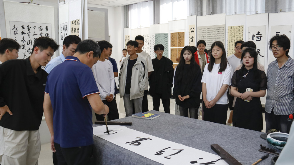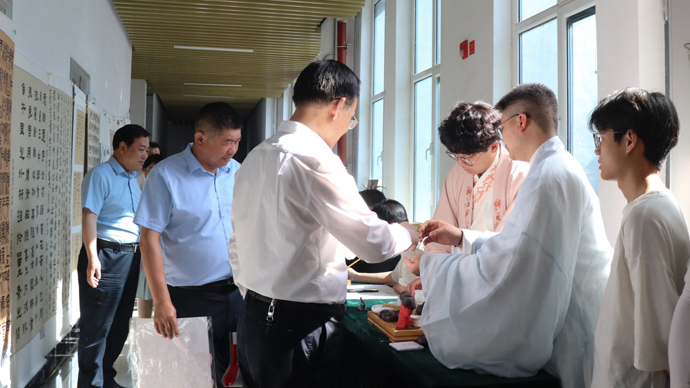 郭明维指出,多年来学院以“书”为魂,以“书”为脉,充分发挥“文化铸魂、文化赋能”的作用。师生书画作品展已连续举办了九届;希望通过本次书画展览这个极佳的学习和交流的机会,全院师生能以文会友,书画传情,大家相互切磋交流,增进彼此友谊,有效的弘扬和传承优秀传统文化。