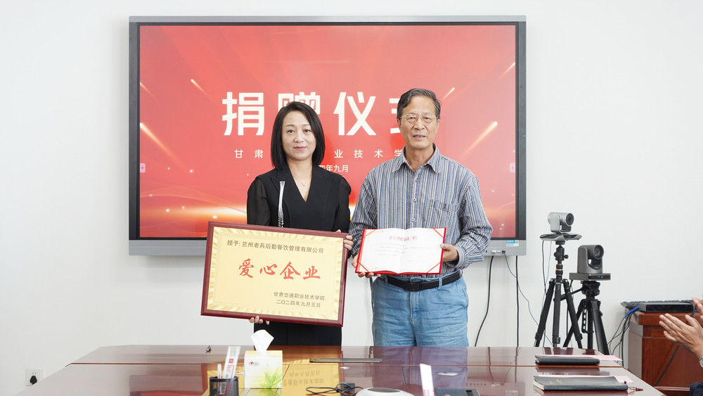 仪式最后,双方代表共同签署了捐赠协议,并向兰州老兵后勤餐饮管理有限公司颁发“爱心企业”证书。